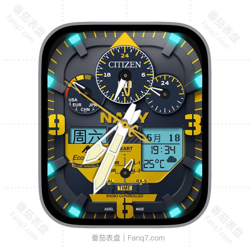 CITIZEN西铁城NAVY飞行仪表黄灰配色数字时间天气电量三盘ultra表盘.clock&clock2
