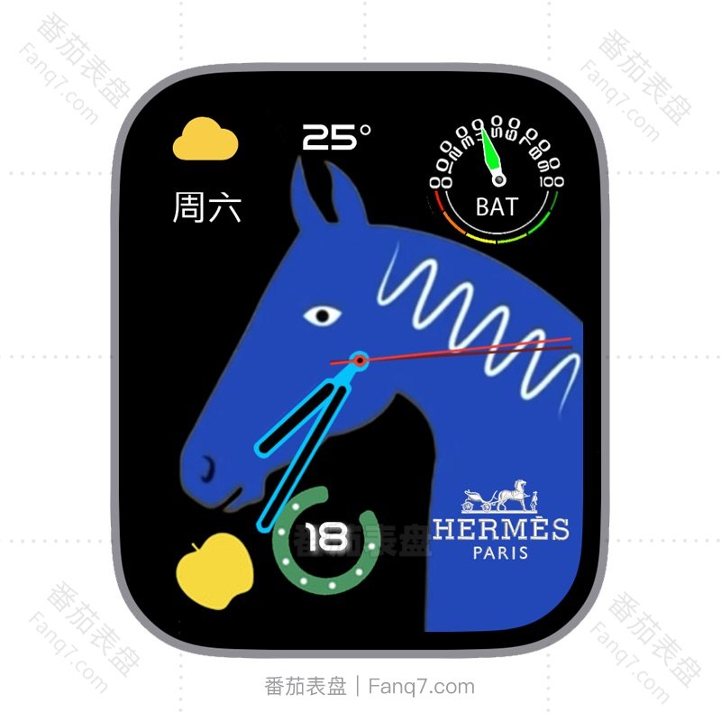 HERMES爱马仕蓝色幸运马多功能天气电量星期日志指针表盘.clock&clock2