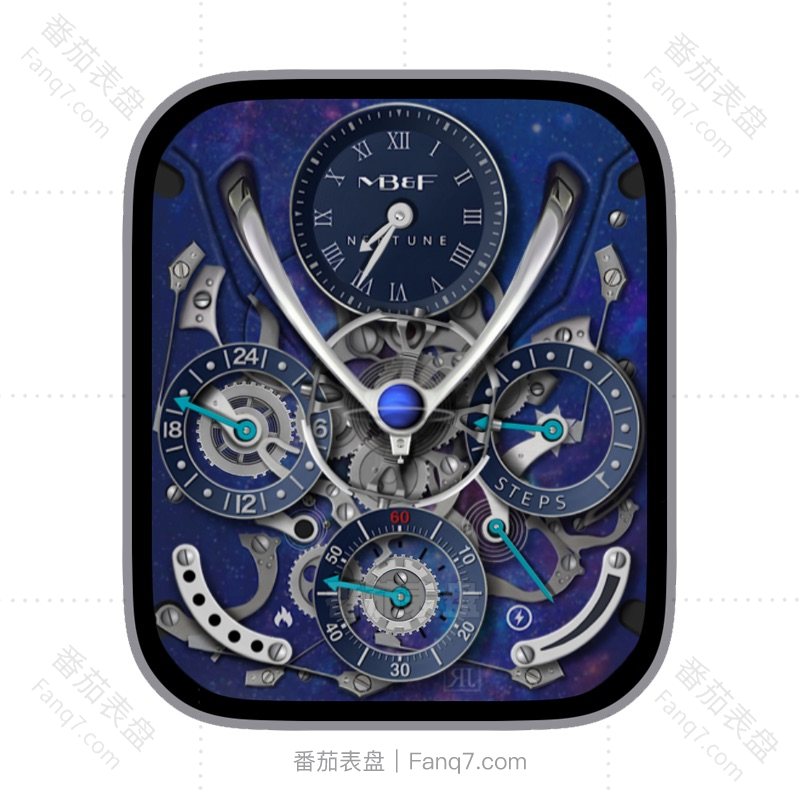 蓝色星空银色金属齿轮多功能部署点了刻度指针四盘表盘.clock&clock2