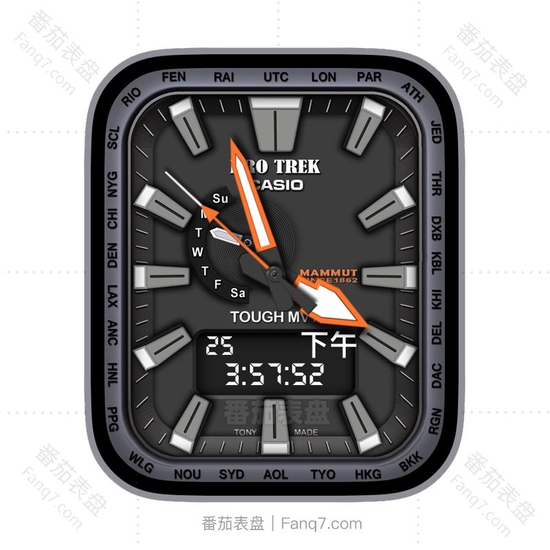 CASIO卡西欧MAMMUT深灰背景星期数字时间刻度指针表盘.clock&clock2