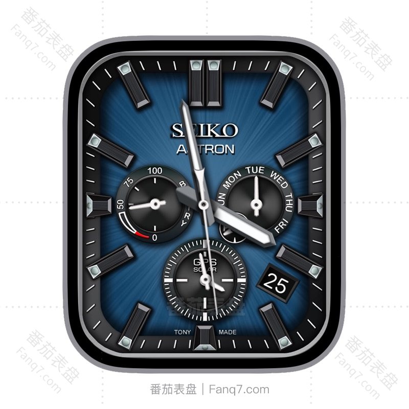 SEIKO精工蓝色放射背景电量星期日志刻度指针表盘.clock&clock2