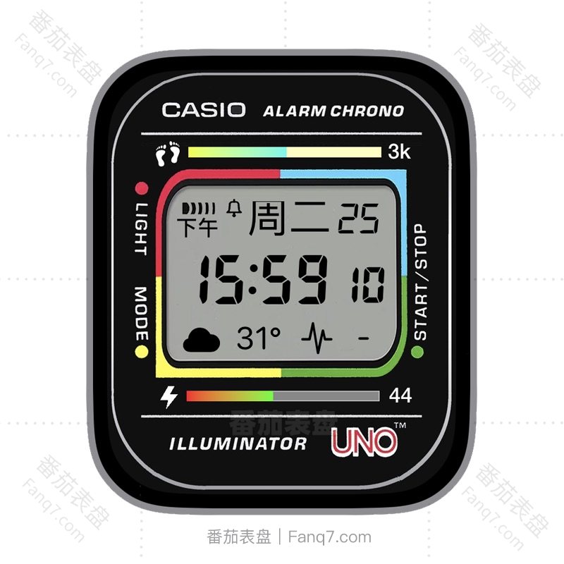 CASIO卡西欧UNO简约数字时间天气温度星期日志电量ultra表盘.clock&clock2