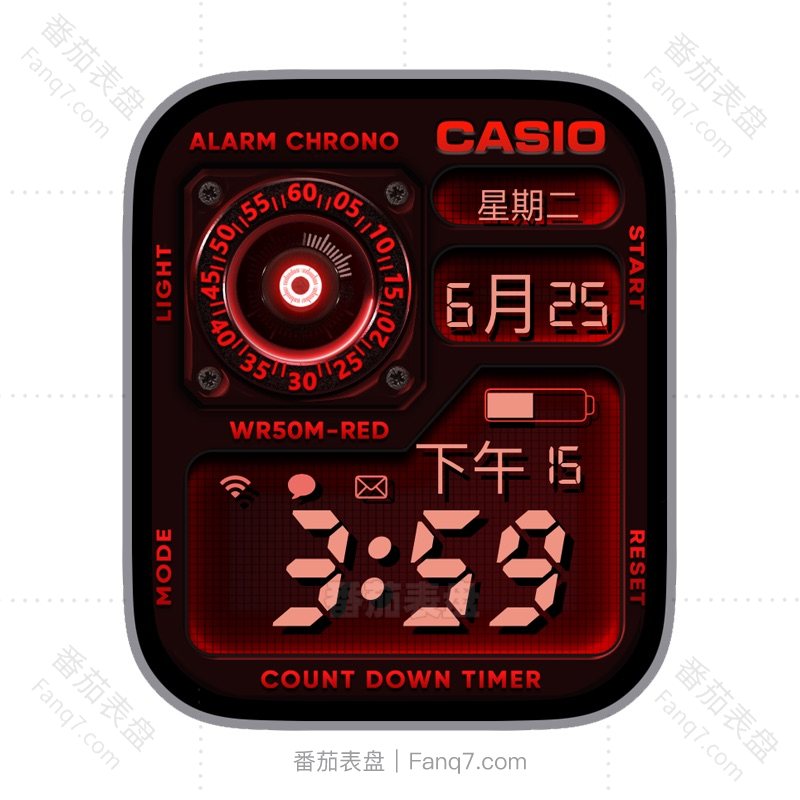 CASIO复古红WR50M-RED LCD面板风数字时间星期日志电量表盘.clock&clock2