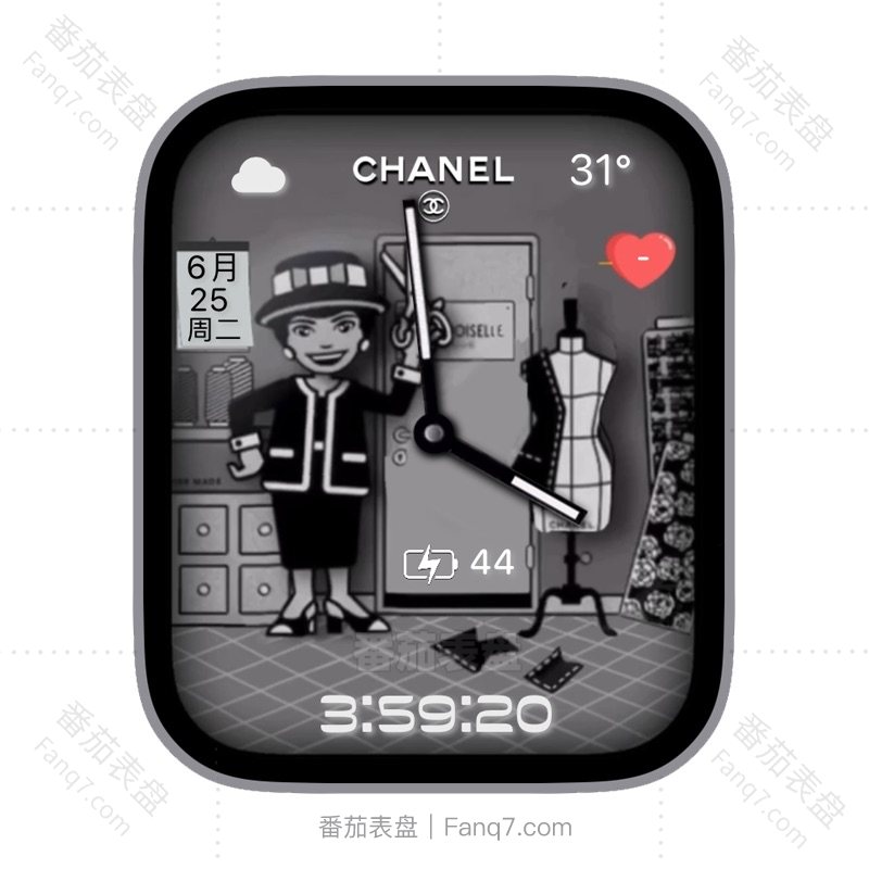 CHANEL香奈儿复古灰白电量数字时间日历星期心率温度天气表盘.clock&clock2