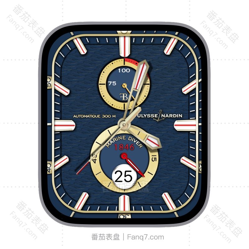 Ulysse Nardin雅典表蓝色波浪背景电量日志刻度指针双盘表盘.clock&clock2