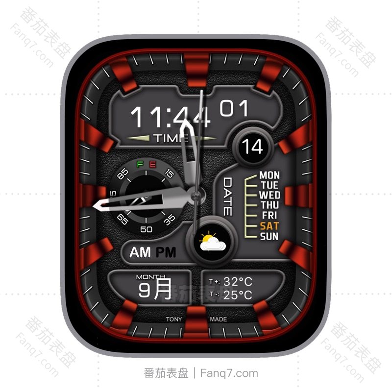 酷黑红创意多功能日历电子表盘.clock&clock2