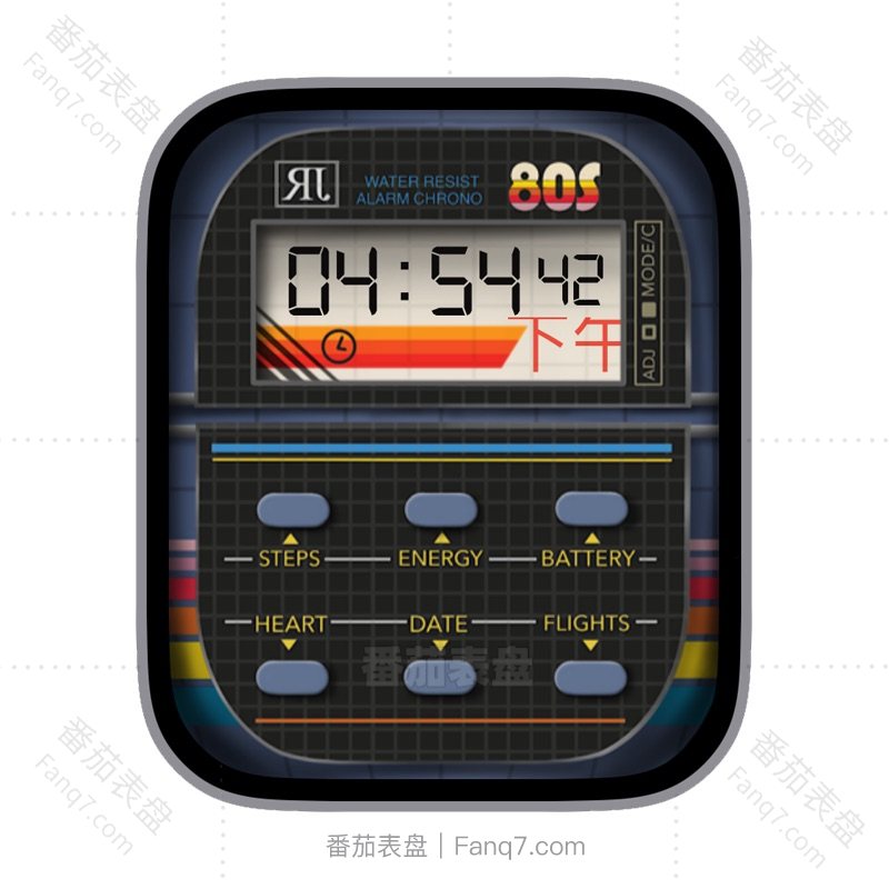 复古彩色LCD多功能步数心率电量数字时间表盘.clock&clock2