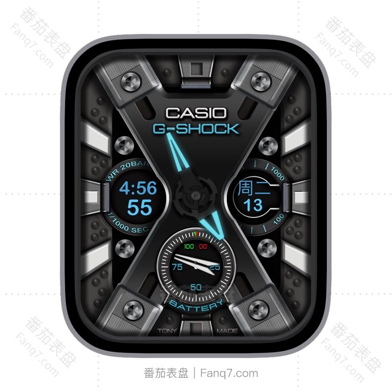 CASIO深灰金属卡西欧G-SHOCK荧光指针星期日志电量数字时间三盘表盘.clock&clock2