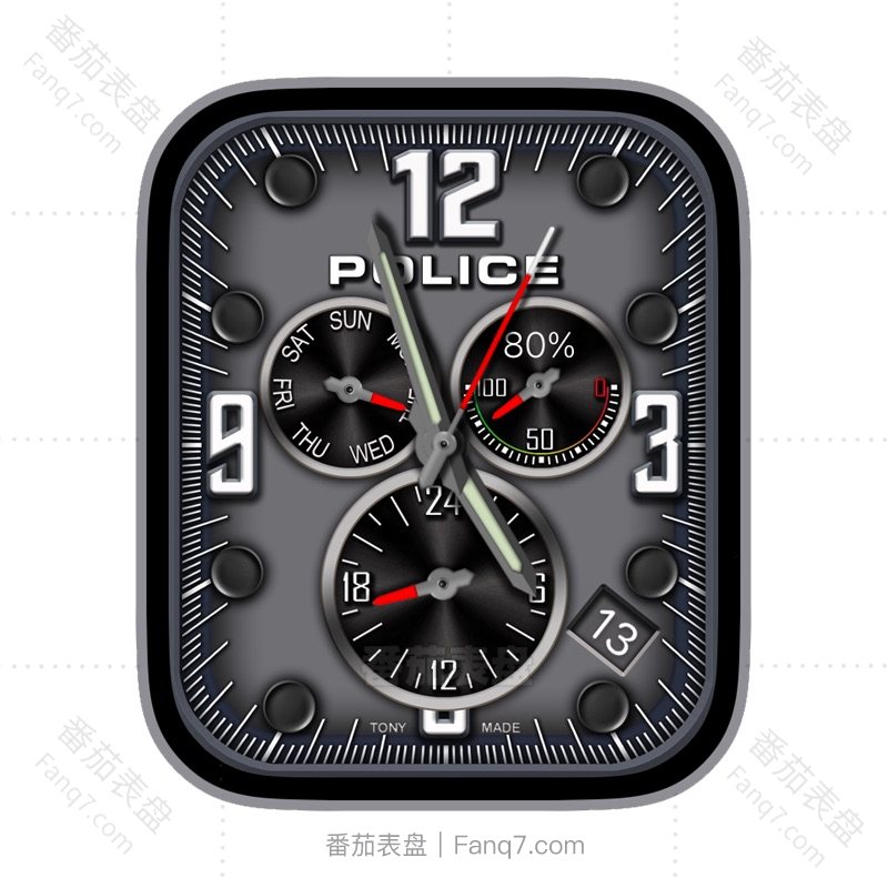 POLICE深灰简约多功能电量星期日志刻度指针三盘表盘.clock&clock2