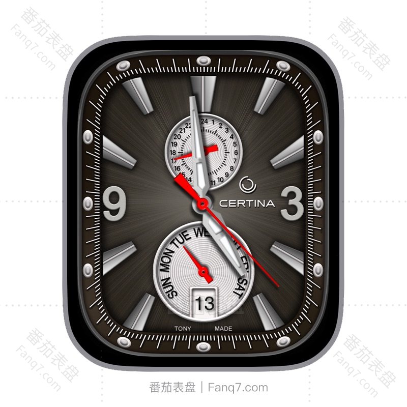 CERTINA雪铁纳浅棕放射背景星期日志刻度指针双盘ultra表盘.clock&clock2