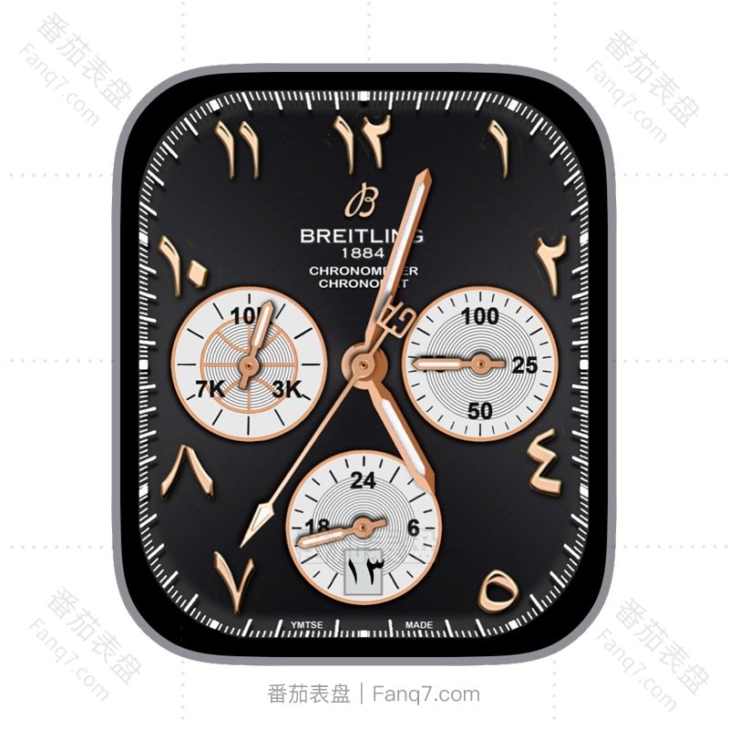 BREITLING百年灵黑色简约背景多功能步数电量日志刻度指针白色三盘表盘.clock&clock2
