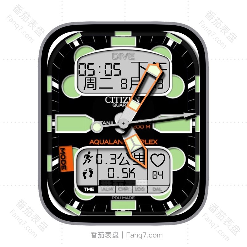 CITIZIN西铁城DIVE黑绿配色LCD多功能心率步数刻度指针表盘.clock&clock2