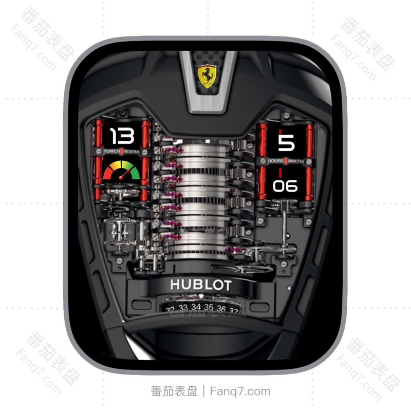 HUBLOT宇舶法拉利发动机创意日志电量数字时间表盘.clock&clock2