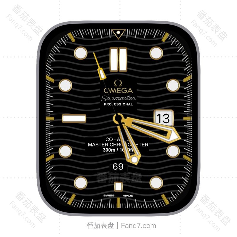 OMEGA欧米茄酷黑波纹背景日志方框金色指针ultra表盘.clock&clock2