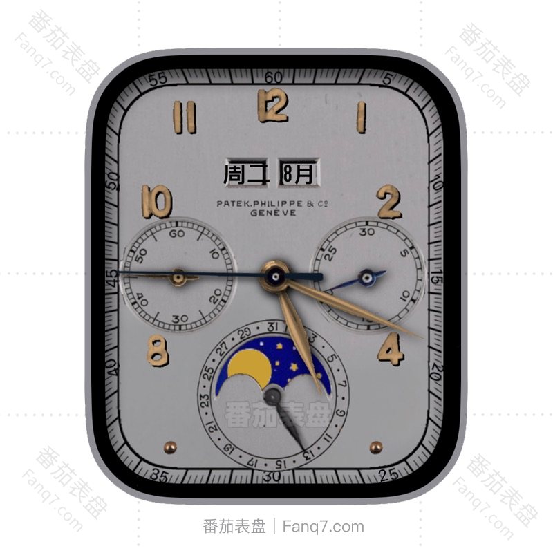PATEK PHILPPE百达翡丽白色背景多功能月相日志月历刻度指针表盘.clock&clock2