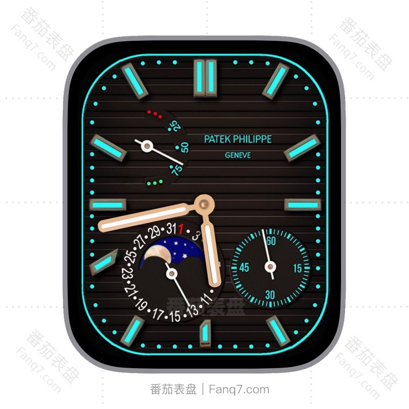 PATEK PHILPPE百达翡丽咖啡色月相电量荧光蓝刻度指针表盘.clock&clock2