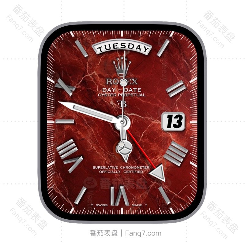 ROLEX劳力士红色大理石背景日志刻度银色指针表盘.clock&clock2