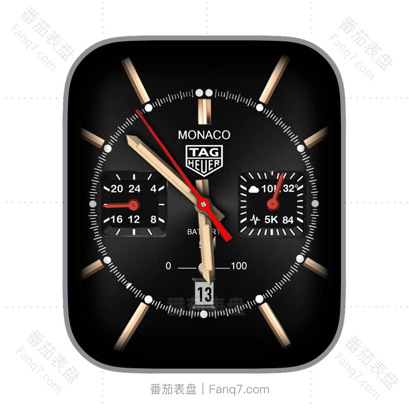 TAGHEUER泰格豪雅黑金配色MONACO方形多功能天气温度步数刻度指针表盘.clock&clock2