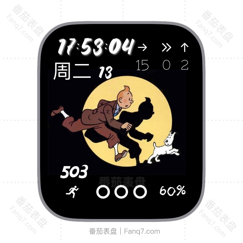 丁丁历险记创意星期数字时间电量步数表盘.clock&clock2