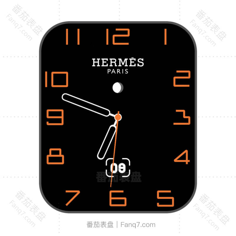 HERMES爱马仕黑色简约橙色刻字表盘.clock