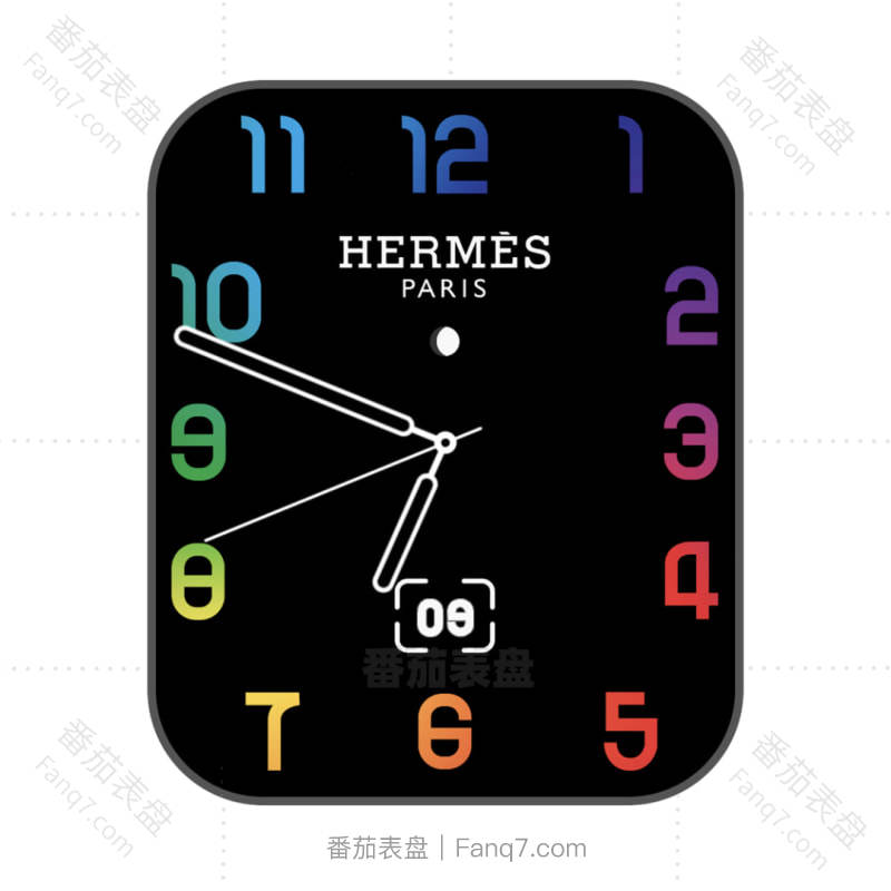 HERMES爱马仕简约个性黑色七彩刻字表盘.clock