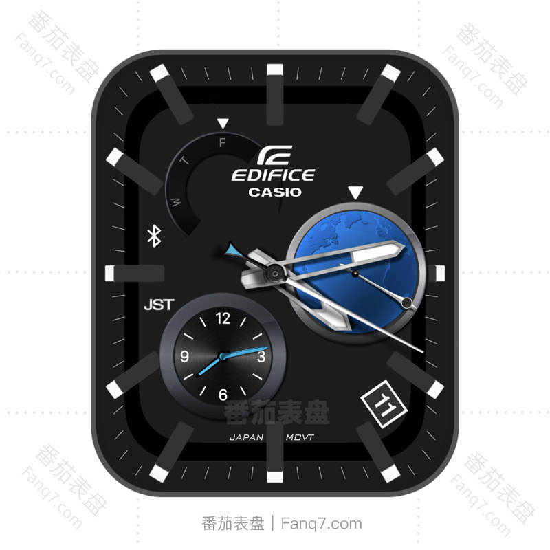 edifice卡西欧酷黑简约三盘蓝色地球表盘.clcok