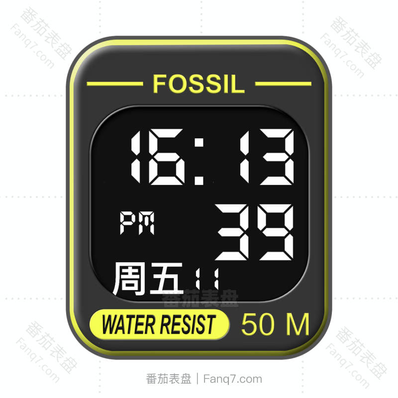 fossil化石黄色灰色数字表盘.clock