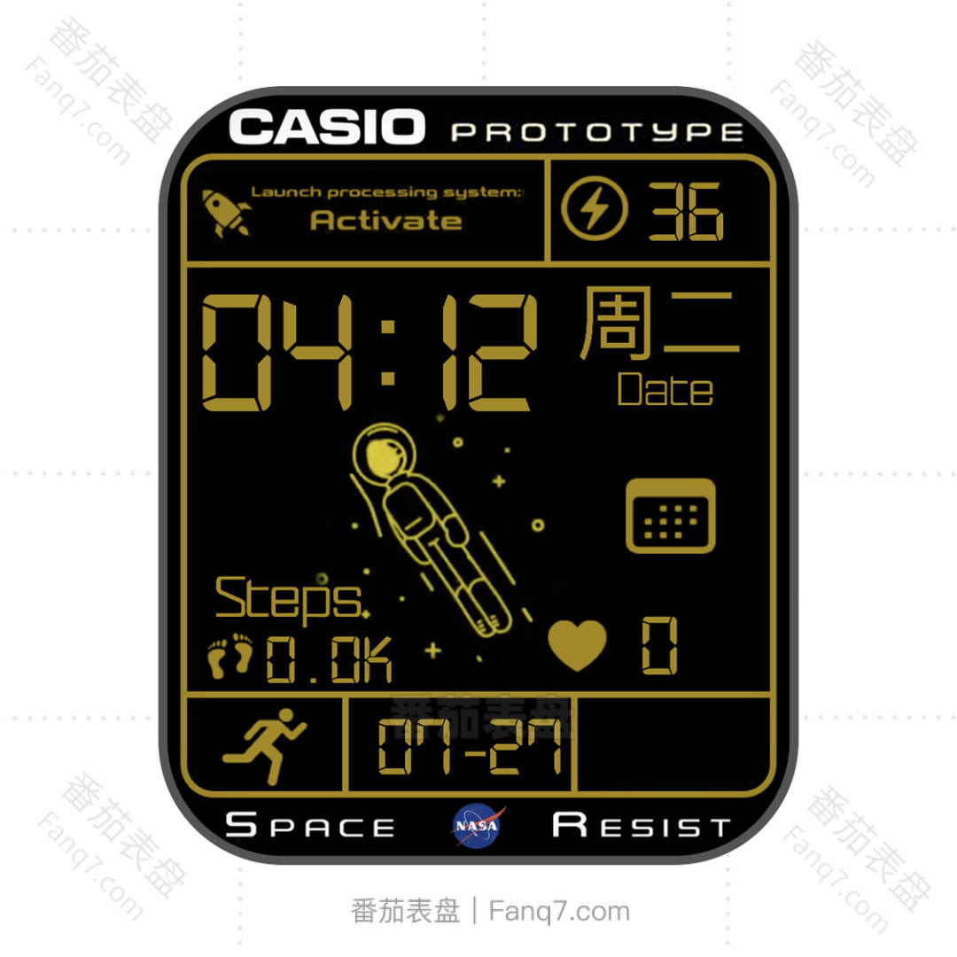 CASIO卡西欧太空人黑底黄色动态表盘.clock