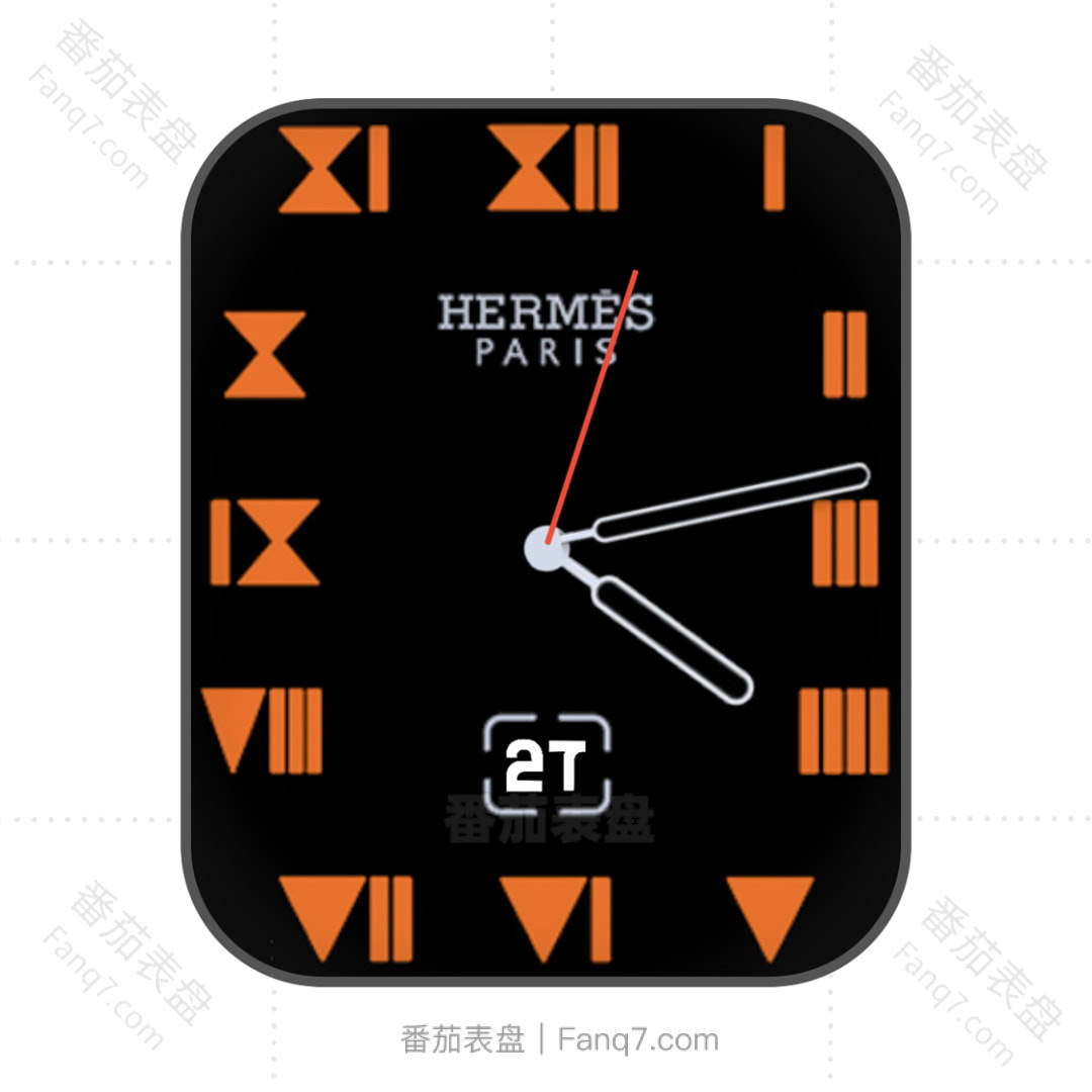 Hermes爱马仕简约黑橙黄色刻度表盘.clock