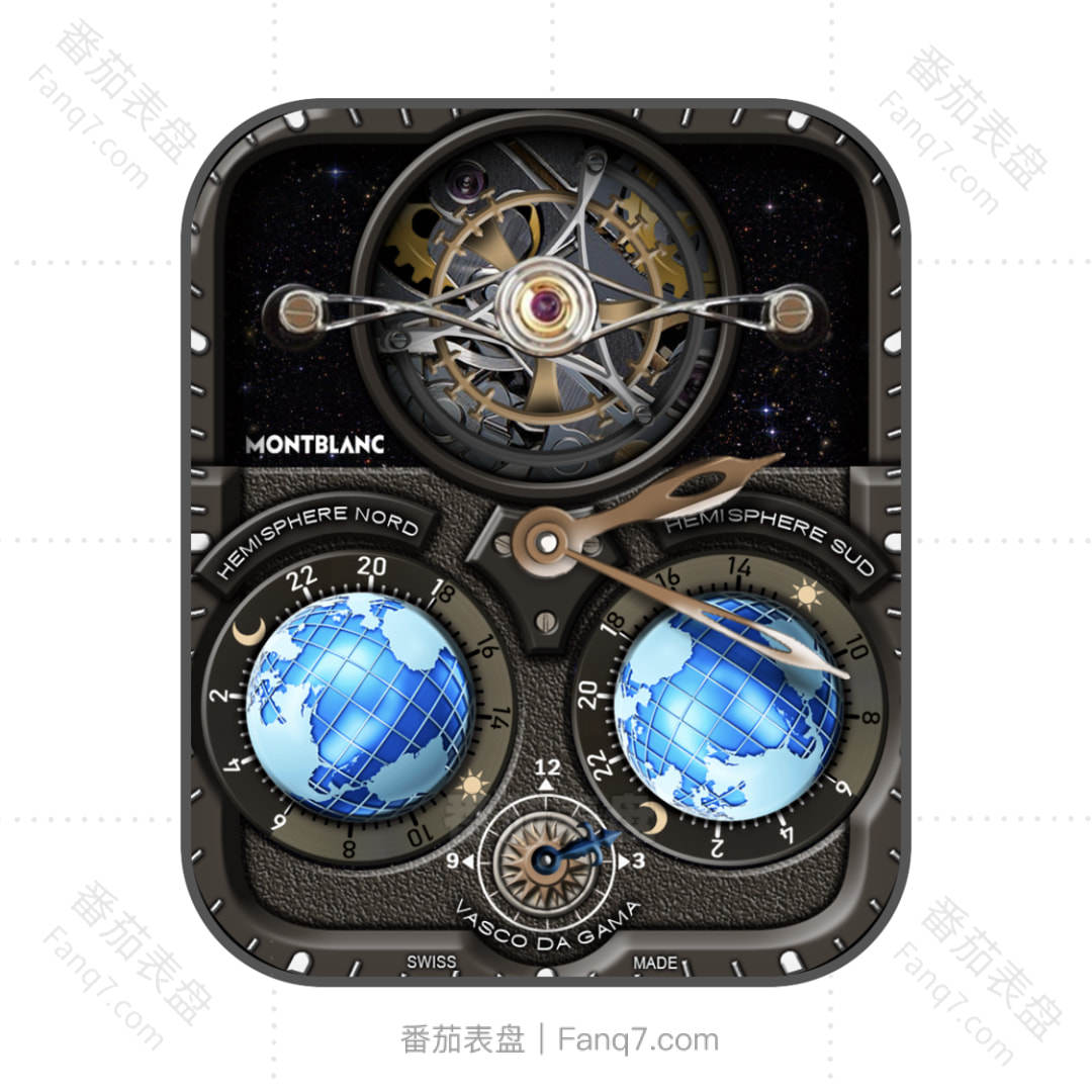 万宝龙Montblanc 黑色星空重力飞陀地球仪机械表盘.clock