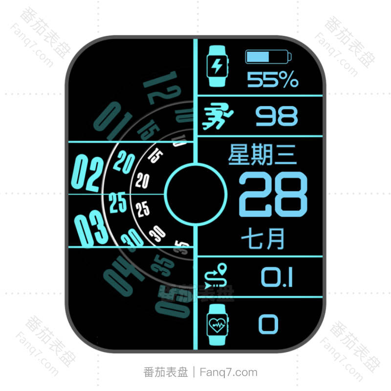 RLMade 39炫酷黑蓝文字五行类表盘.clock