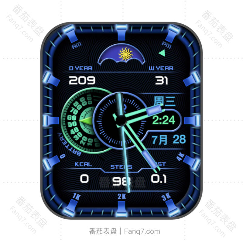 RLMade 38日月变化炫酷荧光蓝绿黑赛伯朋克赛博朋克风机械表盘.clock