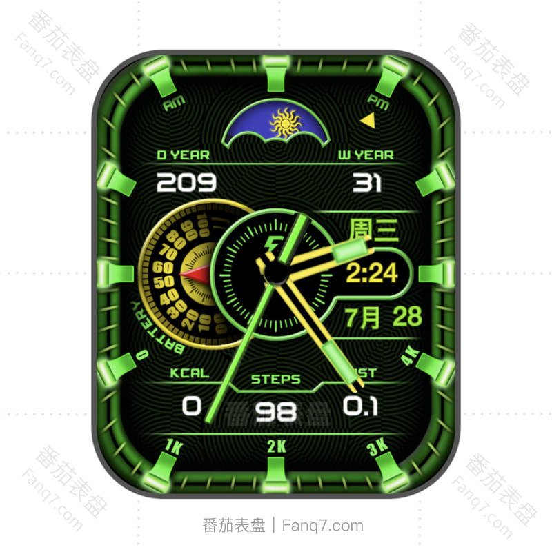 RLMade 38日月变化炫黑荧光绿赛伯朋克赛博朋克风风机械表盘.clock