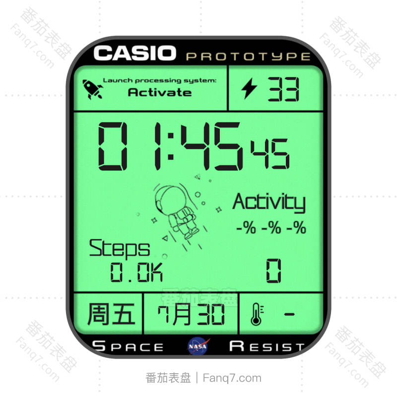卡西欧CASIOG怀网红胖胖的太空人绿色表盘.clock