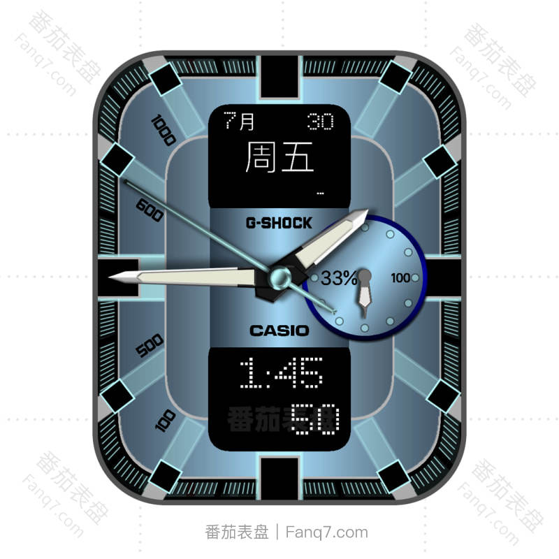 卡西欧CASIOG炫酷渐变蓝色测速计时圈表盘.clock