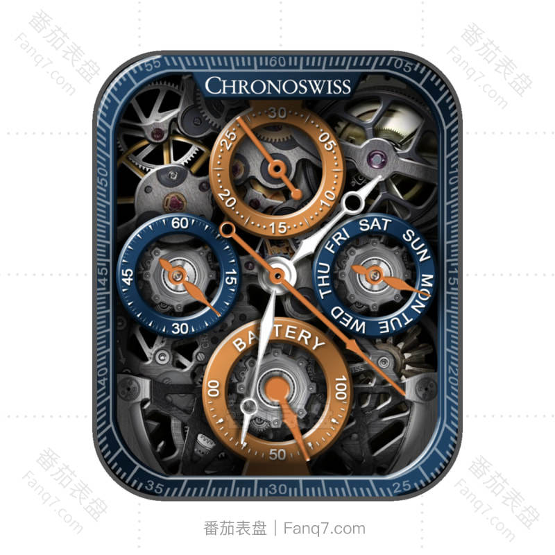 瑞宝CHRONOSWISS黑橙蓝动态炫酷表盘.clock