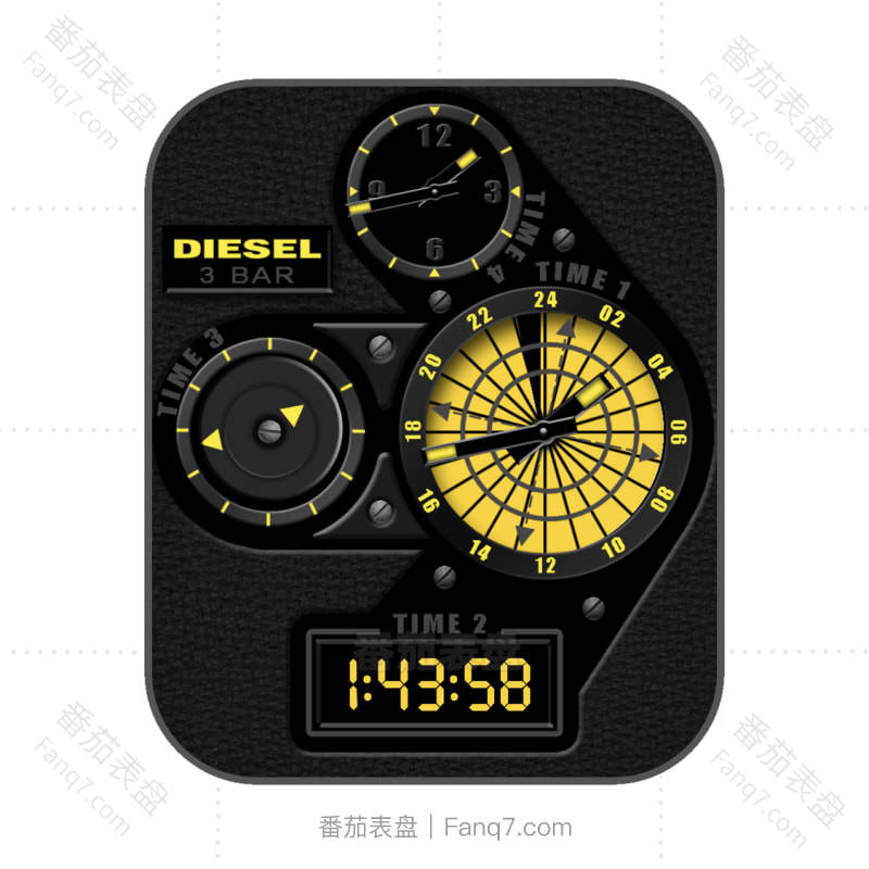 DIESEL迪赛炫酷黑黄复古卡西欧机械表盘.clock