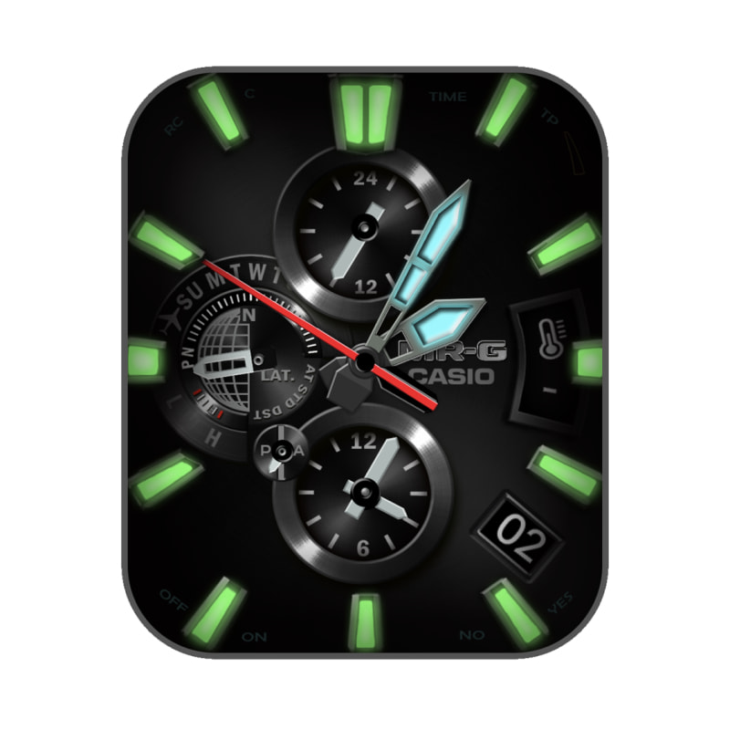 卡西欧CASIOG炫酷暗黑荧光绿机械表盘.clock