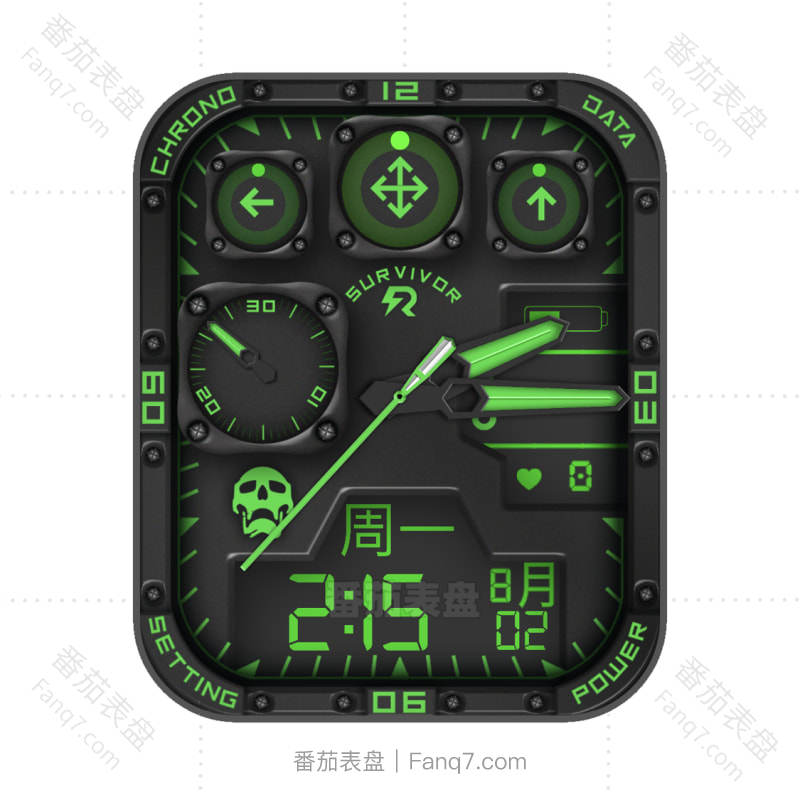 SURVIVOR 绿色机械RL骷髅头表盘.clock