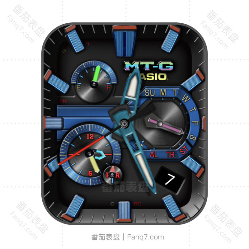 卡西欧MT-G CASIO 炫酷蓝黑多彩机械表盘.clcok