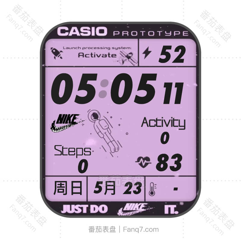 CASIO卡西欧紫色太空人NIKE獠牙动态背景表盘.clock