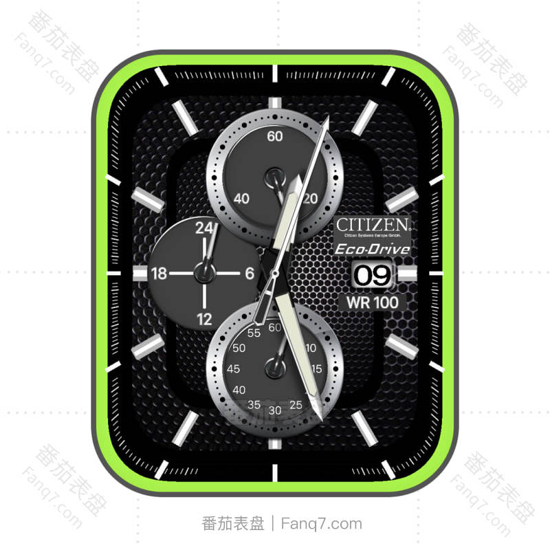 CitizenEco-DriveWr100西铁城蜂窝黑绿边表盘.clock