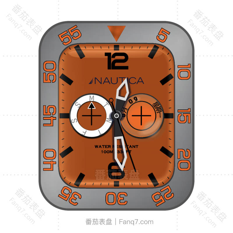 Nautica诺蒂卡橙色灰色外圈表盘.clock