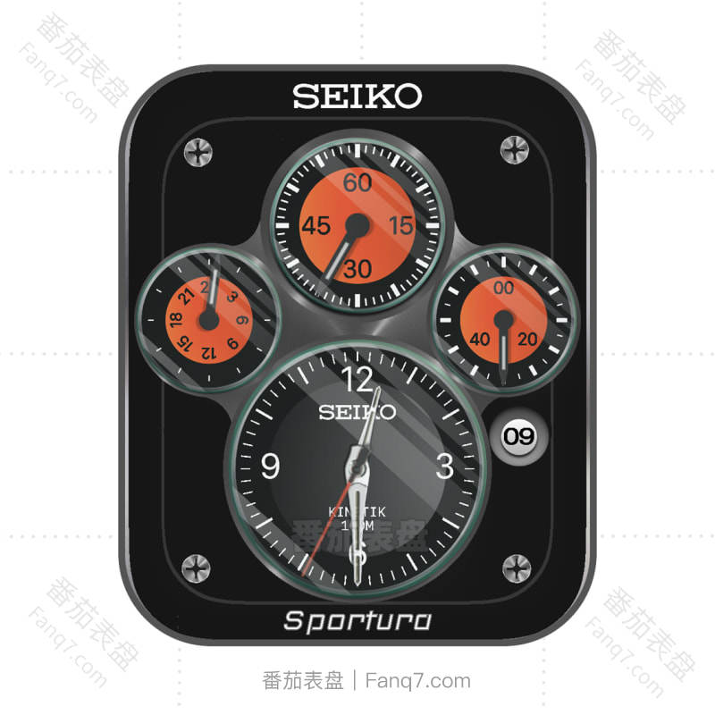 SeicoKinetik黑橙机械表盘.clock