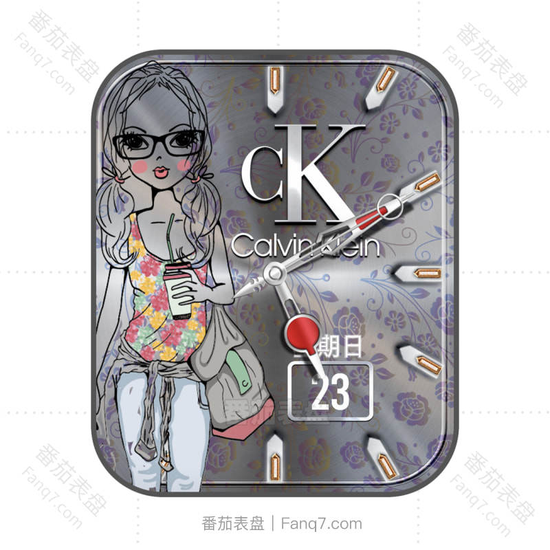 CK Calvin Klein酷银插画少女花朵背景表盘.clock