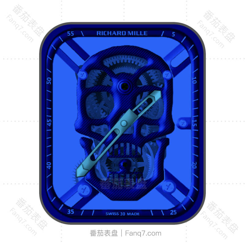 理查德米尔RICHARD MILLE蓝色骷髅炫酷表盘.clock