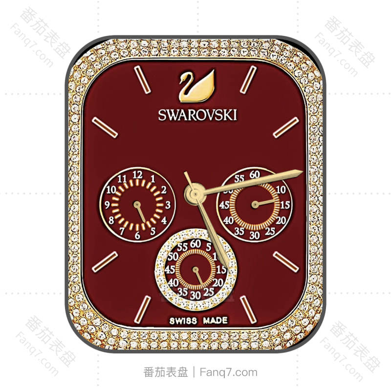 swarovski施华洛世奇酒红金边钻石镶嵌三盘高级奢华表盘.clock