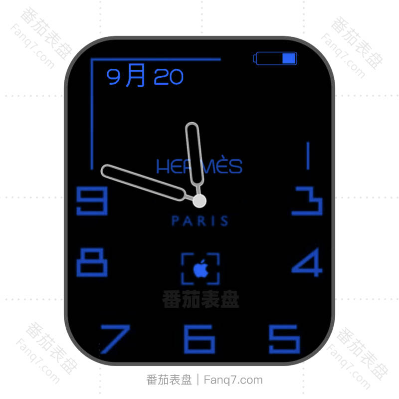 爱马仕Hermes蓝字黑底简约表盘.clock