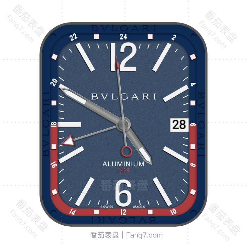 BVLGARI宝格丽牛仔蓝条纹红简约表盘.clock