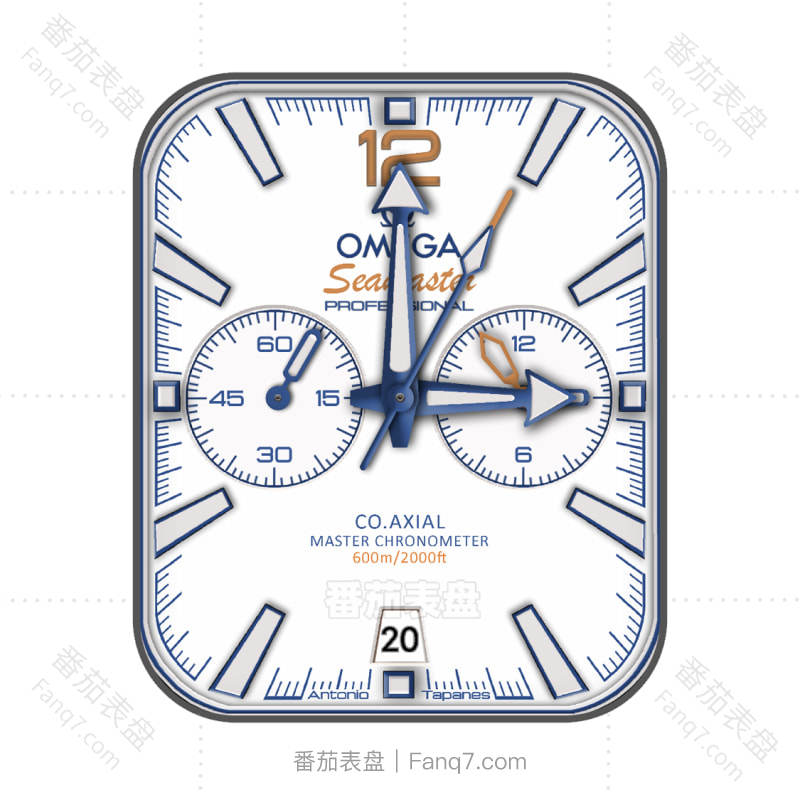 欧米茄OMEGA双小盘系列白蓝金简约书生气息表盘.clock